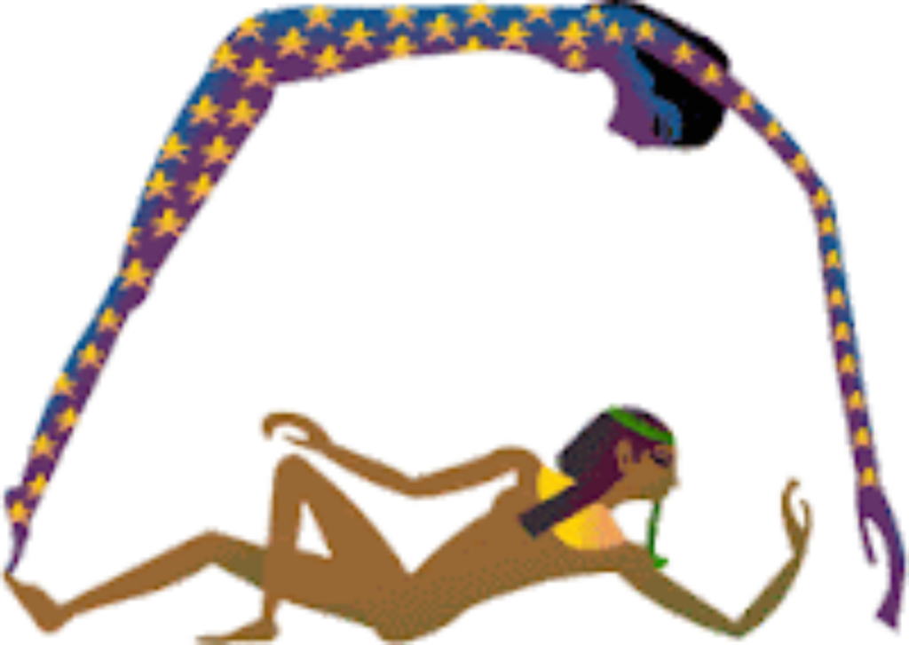 The arched body of the Egyptian goddess Nut — representing the sky — and the reclining earth god Geb symbolically align with this geography.