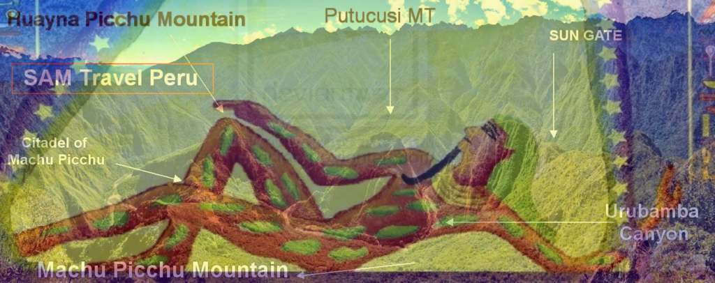 Nut’s arch, stretching across the heavens, mirrors the high arc of the Andes encircling the Sacred Valley, while Geb’s reclining body parallels the Machu Picchu ridges — the “sleeping Earth god.”